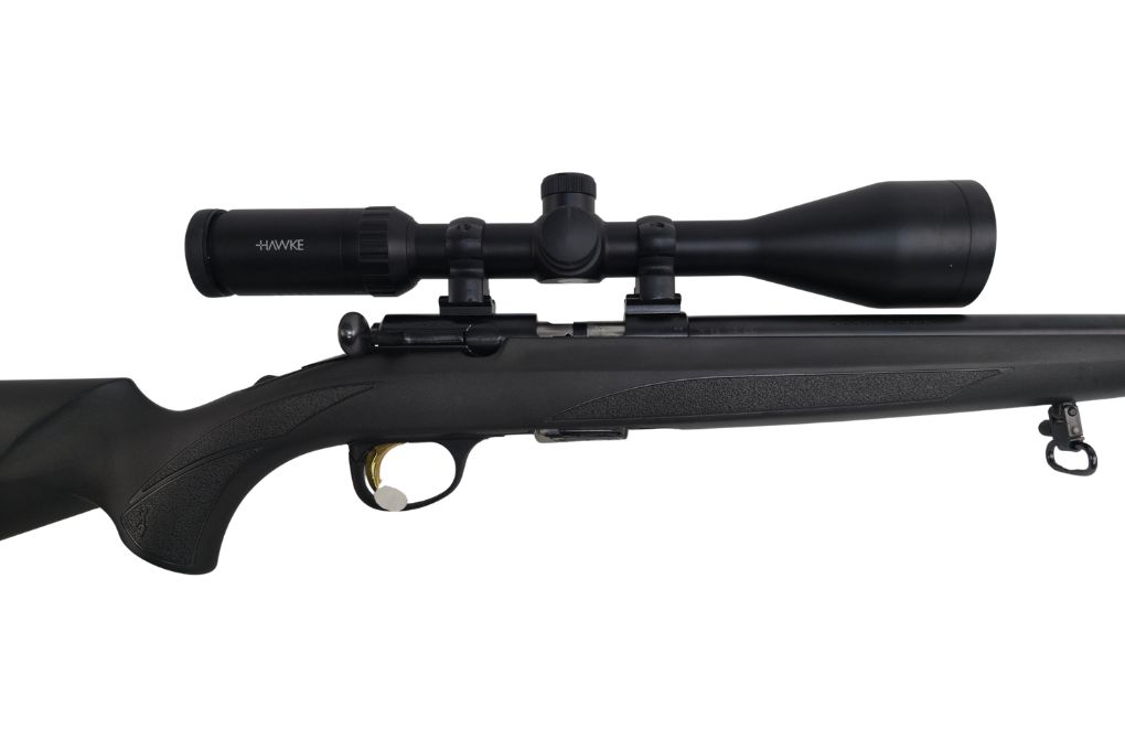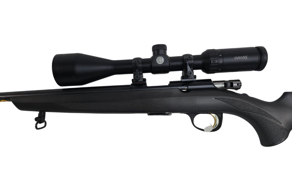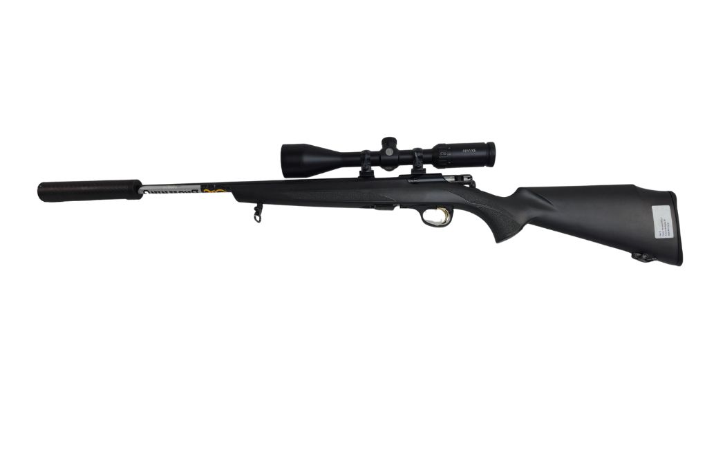 BROWNING T-Bolt mit montierten HAWKE Vantage 3-9x40 und SODIA HS33 KF 1/2-20UNF