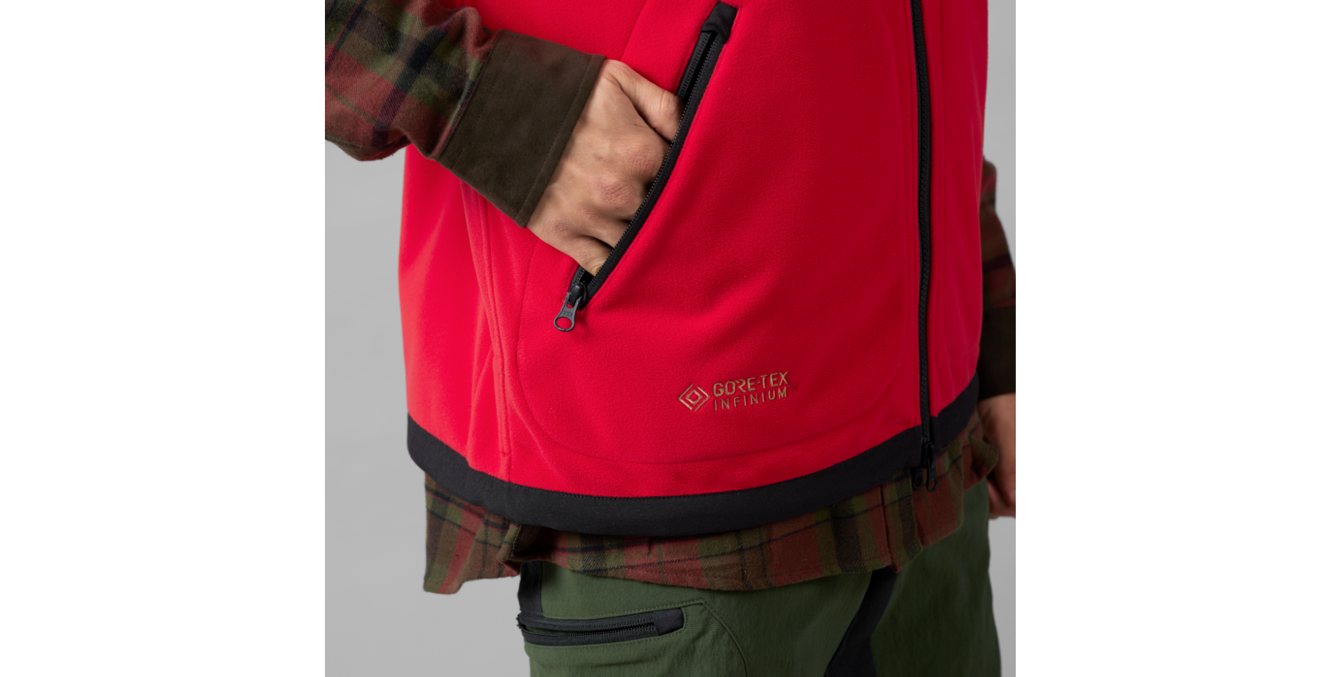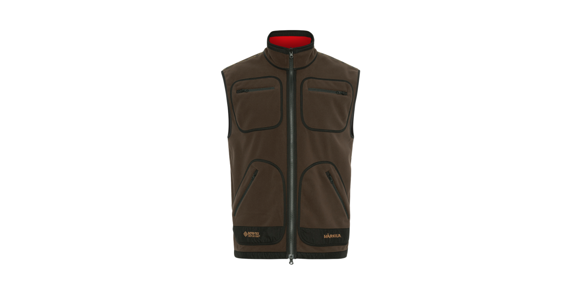 Die HÄRKILA Kamko Fleeceweste ist aus einem weichen und dehnbaren Microfleece-Material gefertigt und als Wendeweste gestaltet. Die braune Seite passt sich ideal den Farben des Waldes an, während die rote Seite für eine optimale Sichtbarkeit des Jägers sorgt. Die GORE-TEX Infinium Windstopper®-Membran der HÄRKILA Kamko Fleeceweste sorgt selbst an windigen Tagen für angenehme Wärme. Darüber hinaus hat dieses Herren-Gilet eine wasser- und schmutzabweisende Behandlung erfahren. Die HÄRKILA Kamko Fleeceweste besitzt zwei Brusttaschen und zwei schräge Fronttaschen - alle mit Reißverschluss - um das Funkgerät, Mobiltelefon oder andere Gegenstände sicher zu verwahren. Weitere Features der HÄRKILA Kamko Fleeceweste sind der hohe Kragen, der 2-Wege-reißverschluss sowie die Verstellmöglichkeiten am Bund für eine optimale Passform.