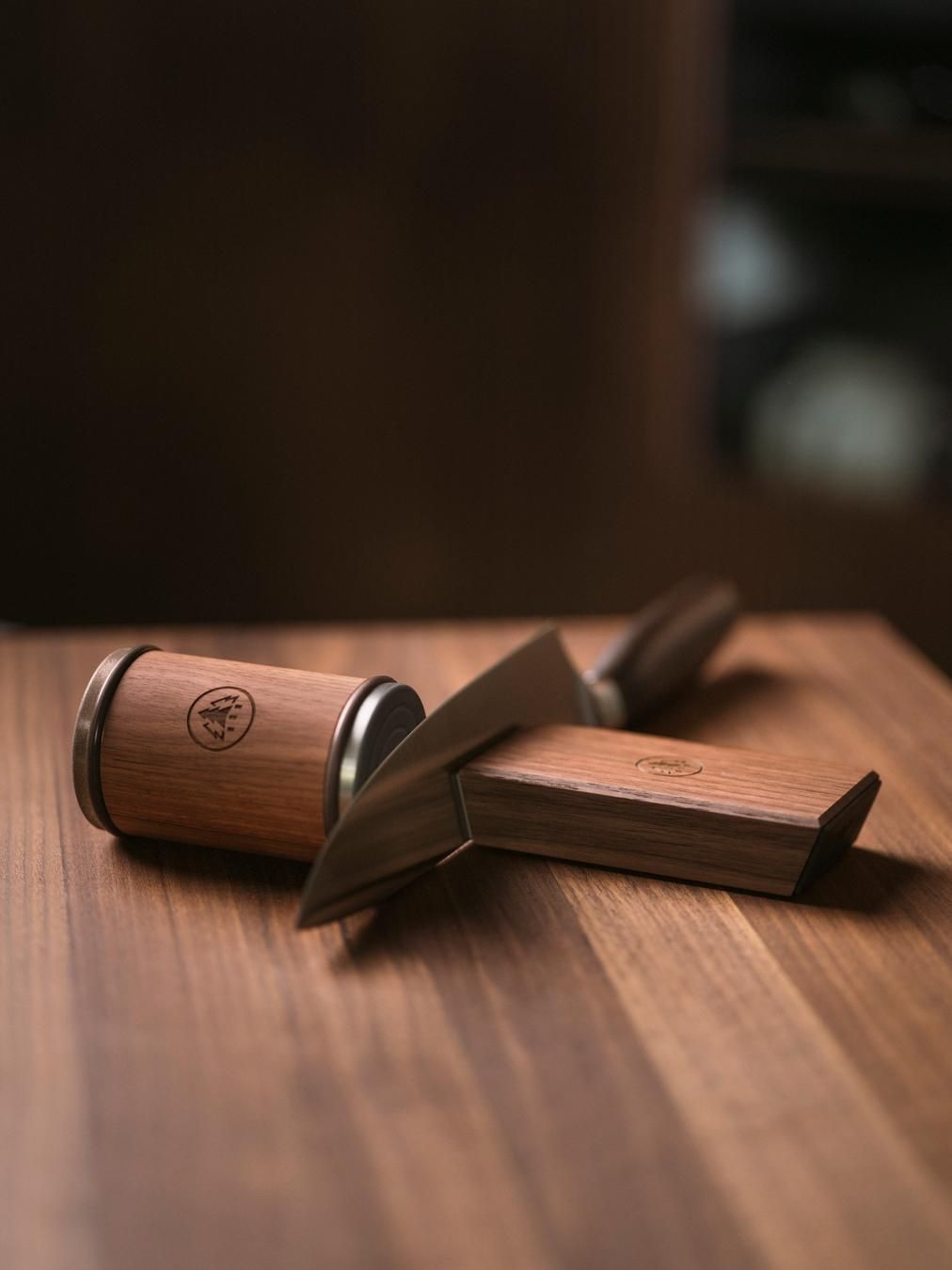 Der HORL 3 Eiche Messerschleifer ist ein hochwertiger Rollschleifer aus Nussbaumholz.