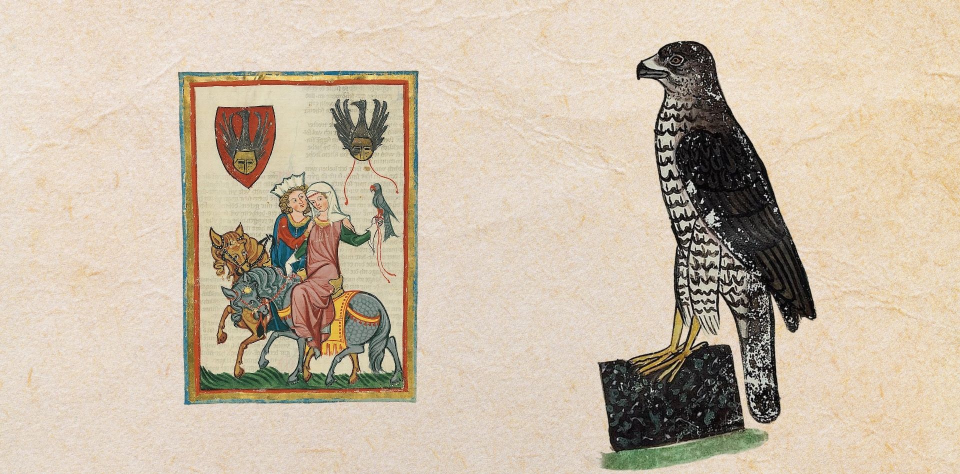 Die Ausritte zur Beizjagd boten naturgemäß viele Gelegenheiten zu sozialem Austausch und Kontaktaufnahme. Gleichzeitig bot das offene, relativ übersichtliche Gelände, wie es nun einmal für die Ausübung der Falknerei notwendig ist, aber ausreichend Aufsichtsmöglichkeiten durch die höfische Gesellschaft, die sogenannte huote, um den Anstand zu wahren. So lobt der zwischen 1360 und 1377 entstandene Roman des Deduis (Buch der Vergnügungen, in dem es ausschließlich um das Weidwerk geht!) an der Beizjagd die Möglichkeit, auch Frauen teilnehmen zu lassen. Bei einer chaotischen Treibjagd durch den Wald hätten sich die Anstandsdamen der Hofgesellschaft demgegenüber viel schwerer dabei getan, ständig auf der Hut zu sein, weshalb diese Jagdweise für Frauen wohl zusätzlich problematisch war. Immerhin war die Ehre das soziale Kapital der Ständegesellschaft und als solches unbedingt zu erhalten, am besten, indem man schon im Vorhinein jede Möglichkeit zum Zweifel ausschloss. Nichtsdestoweniger war die Beziehung zwischen Mann und Frau natürlich auch schon vor tausend Jahren ein Dauerbrenner, der im Hochmittelalter seine spezielle künstlerische Ausprägung in Form der Minnedichtung fand. Eines der wichtigsten Dingsymbole in der Liebeslyrik des 11. bis 13. Jahrhunderts war wiederum der Falke, mit dem zum Beispiel Schönheit und gleichzeitig Vergänglichkeit des Liebesglücks ausgedrückt werden konnten. Der von Kürenberg, welcher als einer der ersten bekannten Minnesänger gilt, verfasste daher nicht von ungefähr sein berühmtes Falkenlied, in dem es nur vordergründig um den titelgebenden Greifvogel geht. Laut gängiger Interpretation dreht sich Ich zoch mir einen valken um eine Dame, deren Liebling sich davongemacht hat. Im weltberühmten Nibelungenlied darf das Motiv auch nicht fehlen: Ganz am Anfang hat Kriemhild, bevor sie ihren Vorzeigeritter Siegfried trifft, einen prophetischen Traum vom gewaltsamen Ableben eines schönen Falken. Wie wir wissen, geht die Geschichte dann für den etwas zu vertrauensseligen Drachentöter auch sehr schlecht aus, so wie später dann für eigentlich alle anderen Akteure ebenso – vom Hofkaplan einmal abgesehen.