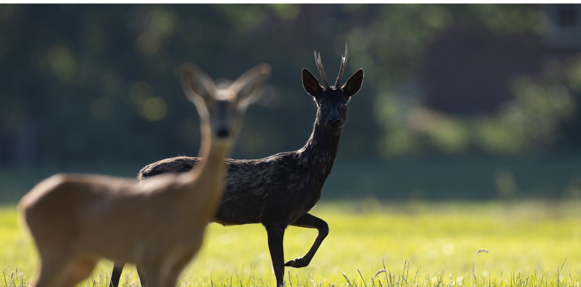 Die spezielle Färbung seiner Decke stellt das einzige äußerliche Merkmal dar, welches das „Schwarzwild“ von seinen Artgenossen unterscheidet. Im Vergleich wirkt der Körperbau von schwarzen Stücken zwar durchschnittlich schmächtiger, jedoch handelt es sich hierbei um eine optische Täuschung. Nicht nur in der Modewelt gilt nämlich: Schwarz macht schlank! In Sachen Geweihbildung lässt sich ebenso wenig ein Unterschied feststellen, außer vielleicht jener, dass bei den entsprechenden Böcken selbst der Bast schwarz daherkommt. Die farbliche Besonderheit hat genetische Ursachen und wird höchstwahrscheinlich rezessiv vererbt. Das bedeutet, beide Elternteile müssen das entsprechende Merkmal in ihrem Erbgut aufweisen, damit es bei ihren Nachkommen zum Vorschein kommt. Bei den betroffenen Stücken erfolgt eine gesteigerte Bildung von Melaninen, welche durch ihre körperliche Funktion als Farbpigmente die äußere Gestalt von Haar, Haut und Augen bestimmen. Analog hierzu ist das Phänomen der Schwarzfärbung in der Zoologie unter dem Fachbegriff „Melanismus“ bekannt. Melanismus ist im Tierreich weit verbreitet und kann verschiedene Ursachen haben. Bei Vögeln etwa kann es durch Störfaktoren wie Mangelernährung oder Stress zu einer Schwarzfärbung des Gefieders kommen, welche sich aber auch wieder zurückbilden und zudem nicht vererbt werden kann. Im Falle des Rehwildes wirkt sich die übersteigerte Produktion von dunklen Pigmenten dahingehend aus, dass es sich in der warmen Jahreszeit an exponierten Körperteilen wie Haupt oder Ziemer in einem glänzenden Tiefschwarz präsentiert. Die Unterseite geht dagegen schon etwas mehr in Richtung Grau. Der Winter sorgt durchaus arttypisch für etwas mattere Töne. Kitze werden mit bereits schwarzer Decke gesetzt, wobei aber die charakteristischen Flecken entlang des Rückgrats nicht fehlen. Es kommen zudem manchmal Rehe mit nur teilweise ausgeprägtem Melanismus vor, welcher sich zur Sommerszeit auf das Haupt und die Außenseite der Lauscher begrenzen kann.