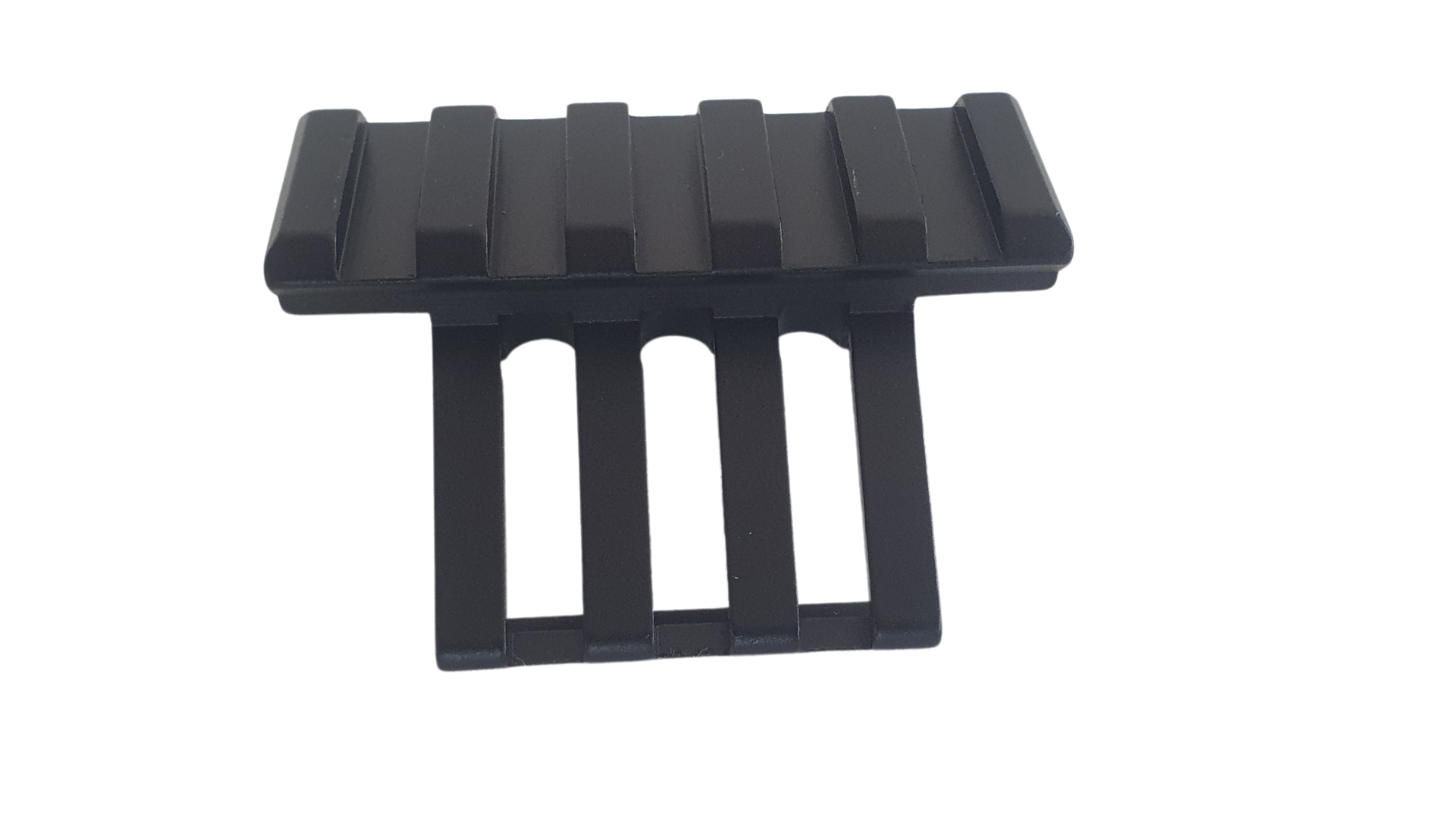 Dieser Aufsatz ermöglicht eine Befestigung von Equipment an Weaver- und Picatinnyschienen in einem 45° Winkel. Für die Montage werden 4 Nuten verwendet. Der Aufsatz lässt sich gleichermaßen links oder rechts befestigen.