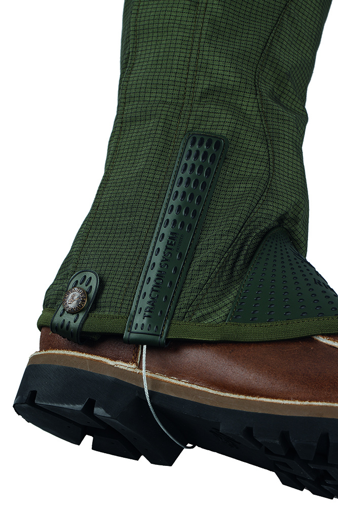 Nichts macht die Jagdfreude im Winter schneller zunichte als nasse und kalte Füße. Die Jagdgamaschen von RISERVA schaffen hier Abhilfe. Die Gamaschen sind aus robustem Cordura gefertigt, das zusätzlich über Ripstop-Eigenschaften verfügt. Die Gamaschen können mit jedem Schuhtyp verwendet werden und das Aus- bzw. Anziehen gestaltet sich besonders einfach. Denn im Gegensatz zu vielen Konkurrenzmodellen werden die Gamaschen von RISERVA per Reißverschluss geschlossen, der zusätzlich mit einem Klettverschluss gesichert werden. Eine Besonderheit dieser Gamaschen ist das Stahlsein, welche sie unter der Sohle sichert. Dank einer Feder ("Traction System") wird dies immer auf Spannung gehalten um ein Hängenbleiben zu verhindern. Zudem kann es auch einfach getauscht werden, sollte es doch einmal reißen.