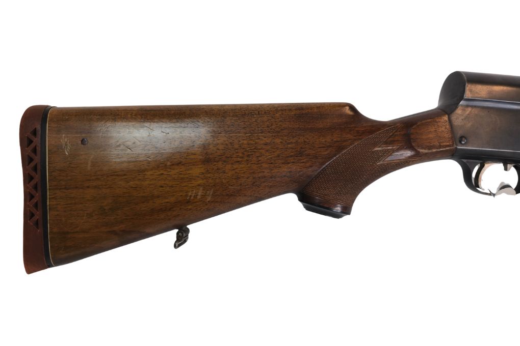 Die Browning Auto 5 ist eine der berühmtesten halbautomatischen Flinten weltweit. Dieses Exemplar wurde von Remington gefertigt – was typisch für die in den USA lizenzierten Versionen ist. Das Rückstoßladesystem mit dem charakteristisch hohen Systemgehäuse garantiert eine schnelle Schussfolge und hat sich über Jahrzehnte bewährt. Der dunkle Schaft aus Nussbaumholz mit griffiger Fischhaut sorgt für ein sicheres Handling. Dank des Kalibers 12/70 ist die Flinte vielseitig einsetzbar – sei es für die Niederwildjagd oder sportliches Schießen. Die Waffe befindet sich in einem guten gebrauchten Zustand mit leichten Gebrauchsspuren – bereit für den nächsten Einsatz.