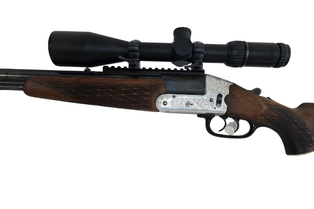 Die Heym Mod. 22 S ist eine klassische Kombinationswaffe, die maximale Flexibilität auf der Jagd bietet. Durch die Umschaltung zwischen Kugel- und Schrotlauf deckt sie ein breites Einsatzspektrum ab – vom Raubwild bis hin zu Niederwild. Der edle Holzschaft mit sauberer Fischhaut liegt sicher in der Hand und unterstreicht den traditionellen Charakter dieser Waffe. Das gravierte Systemgehäuse verleiht ihr zusätzlich eine hochwertige Optik. Das montierte Zielfernrohr AJ-ZF 5-20x50 ermöglicht präzises Ansprechen auch auf größere Entfernungen und rundet das Gesamtpaket sinnvoll ab.