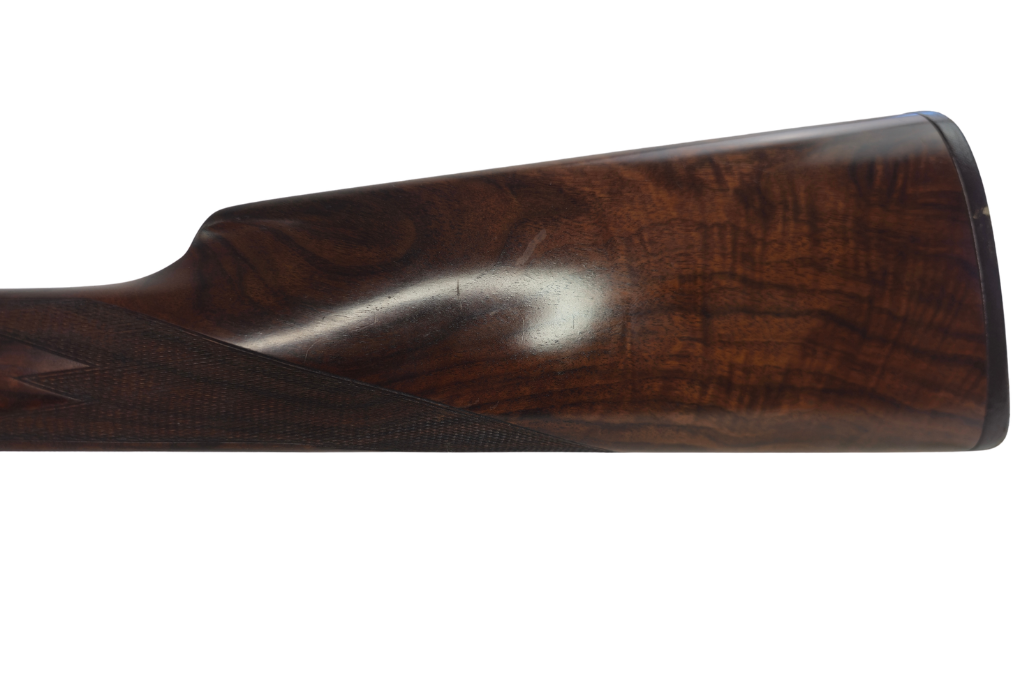 Die gebr. HUBERTUS Seitenverschluss-Doppelflinte im Kaliber 20/70 ist eine exklusive Jagdwaffe für den anspruchsvollen Schützen. Die meisterhaft gearbeitete Arabeskengravur verleiht der Flinte eine zeitlose Ästhetik, die durch die klassische englische Schäftung abgerundet wird. Mit einer Lauflänge von 69 cm, einem präzise abgestimmten Einabzug und integriertem Ejektor bietet diese Flinte eine perfekte Kombination aus Eleganz, Technik und Jagdtauglichkeit. Ihr ausgezeichneter Zustand spricht für eine äußerst gepflegte Vorbesitzer-Historie. Die HUBERTUS ist die ideale Wahl für Liebhaber hochwertiger handwerklicher Waffen und stilbewusste Jäger.