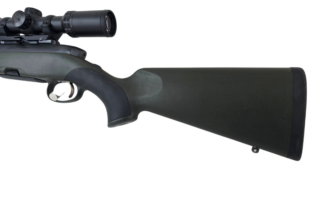 Die Steyr CL II SX steht für moderne Jagdtechnik in robuster und funktionaler Ausführung. Der widerstandsfähige Kunststoffschaft sorgt für hohe Stabilität bei unterschiedlichsten Witterungsbedingungen und macht die Büchse zu einem zuverlässigen Begleiter im Revier. Das montierte AJ 3-12x56 Zielfernrohr ermöglicht durch seinen großen Vergrößerungsbereich und die lichtstarke 56er Objektivlinse präzises Ansprechen – auch bei schwierigen Lichtverhältnissen. Die hochwertige Dentler Montage mit A-Tec Schnellverschluss erlaubt ein schnelles und sicheres Abnehmen der Optik. Die Waffe befindet sich in neuwertigem Zustand und überzeugt durch ihre durchdachte Ausstattung.