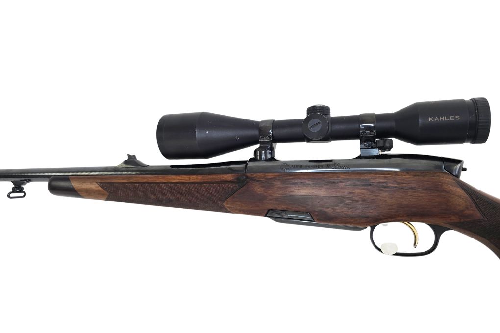 Diese Steyr Mannlicher Luxus überzeugt durch ihre zeitlose Optik und zuverlässige Technik. Der edle Holzschaft mit ausgeprägter Maserung und sauber geschnittener Fischhaut bietet nicht nur eine ansprechende Ästhetik, sondern auch sicheren Halt bei jedem Anschlag. In Kombination mit dem Kahles Helia CB 8x50L ergibt sich ein leistungsstarkes Setup für den Ansitz sowie für weite Distanzen im offenen Gelände. Das Kaliber 6,5x68 ist bekannt für seine gestreckte Flugbahn und hohe Präzision. Die Waffe befindet sich in einem sehr guten Zustand und ist sofort einsatzbereit – eine hervorragende Wahl für Jäger mit Anspruch an Qualität und Tradition.