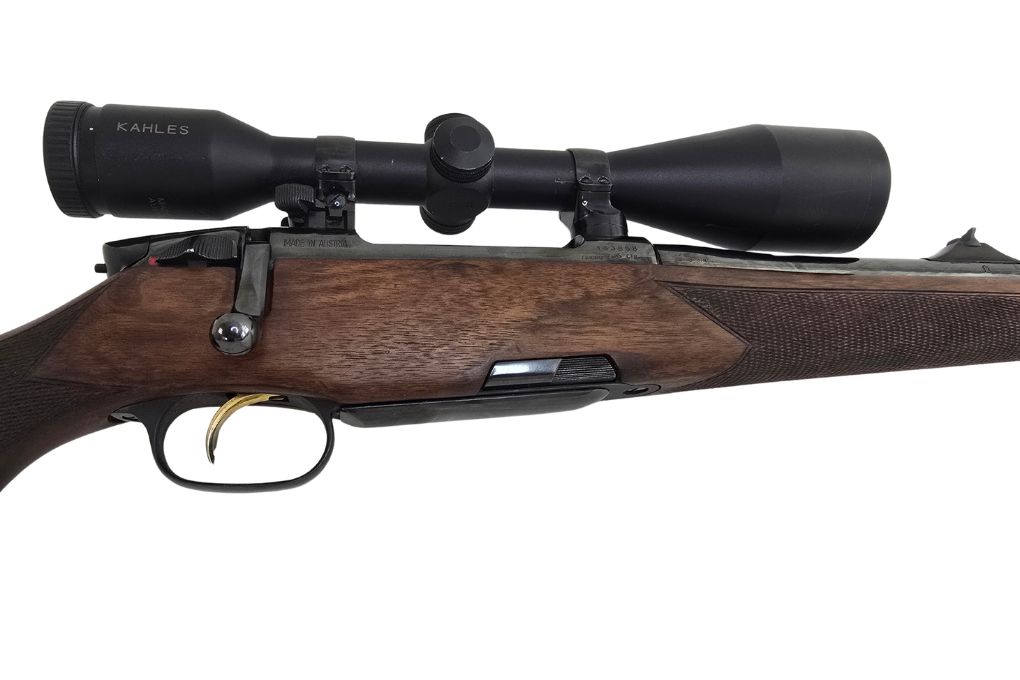 Elegante Jagdbüchse in klassischer Ganzschaft-Ausführung mit hochwertiger Kahles Optik. Bewährte Technik trifft auf edle Verarbeitung und starke Leistung für anspruchsvolle Jagdsituationen.