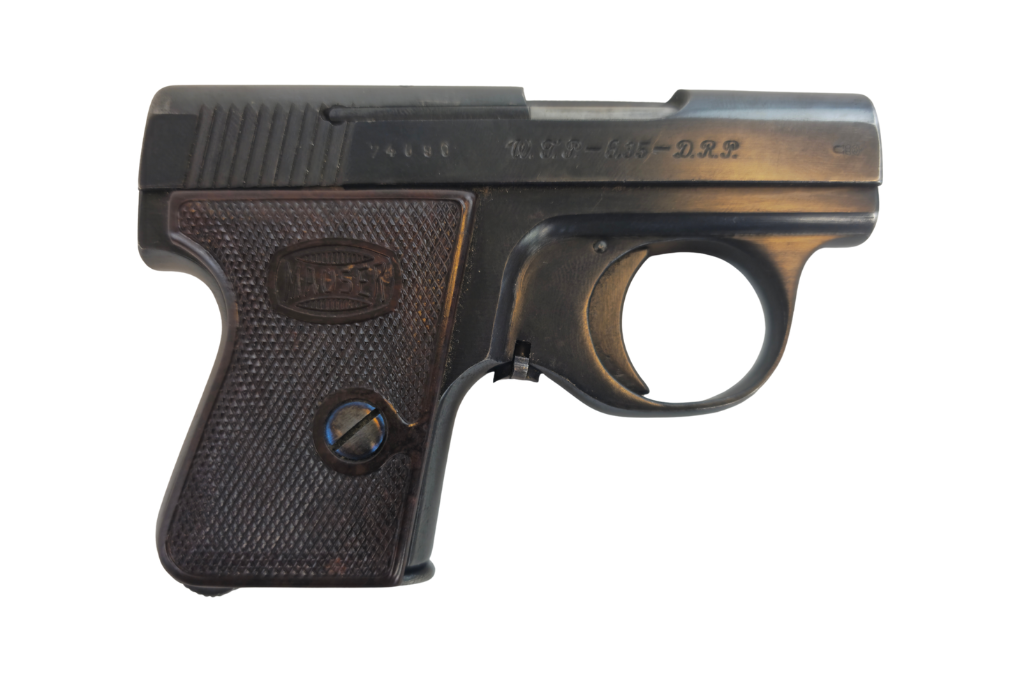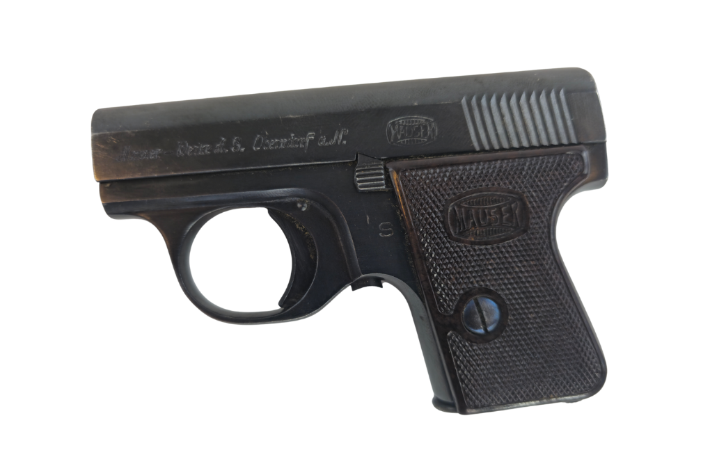 Kompakte Westentaschenpistole aus den 1920er-Jahren mit solider Verarbeitung und typischem Mauser-Design. Ein geschichtlich interessantes Sammlerstück mit funktionalem Charakter im Kaliber 6,35mm Browning.